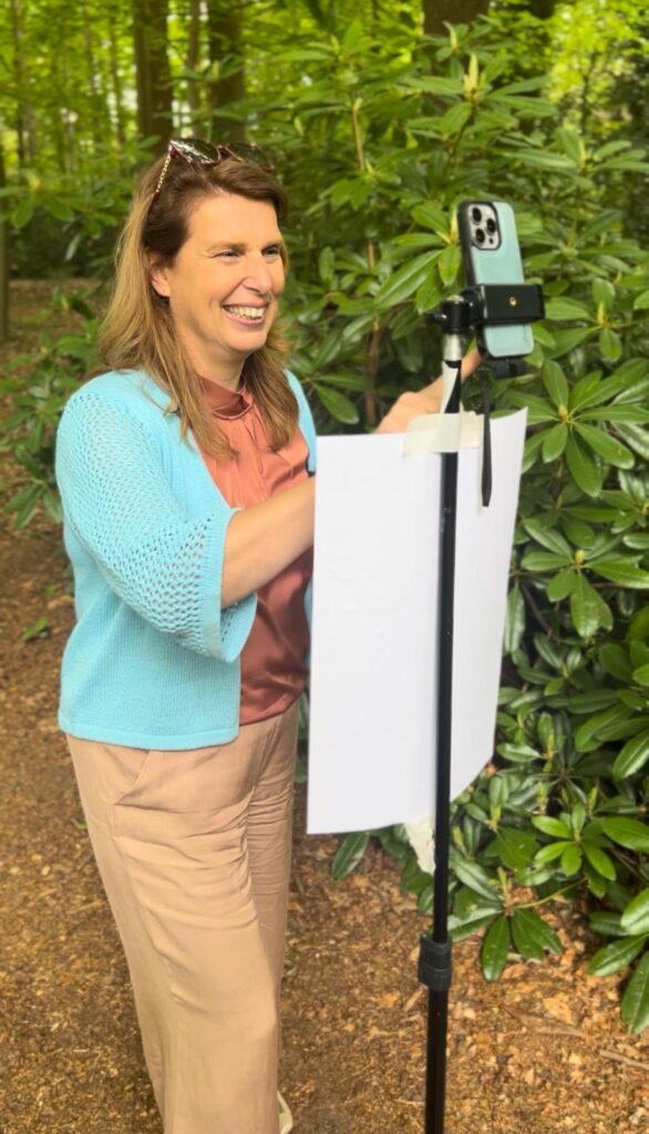 En ja — ook de techniek kwam aan bod. Van statief instellen tot video bewerken op je smartphone (ook als je, net als wij, volwassen vingers hebt 😅). We voegden tussen-shots toe, ondertitels, een voice-over en muziek. Het resultaat? Een boeiende, professionele video die precies laat zien wie Ann is en wat haar uniek maakt als coach voor familiebedrijven.